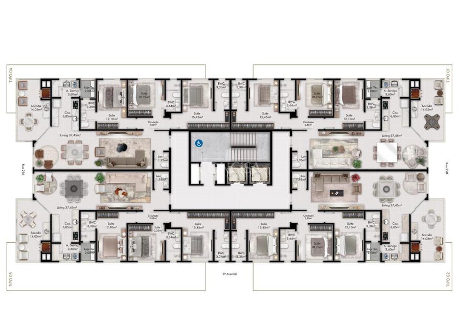 4 Apartamentos por andar