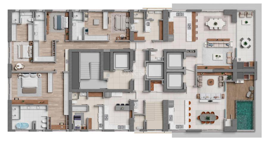 Duplex com 4 suítes, varanda gourmet, piscina e 5 vagas de garagem