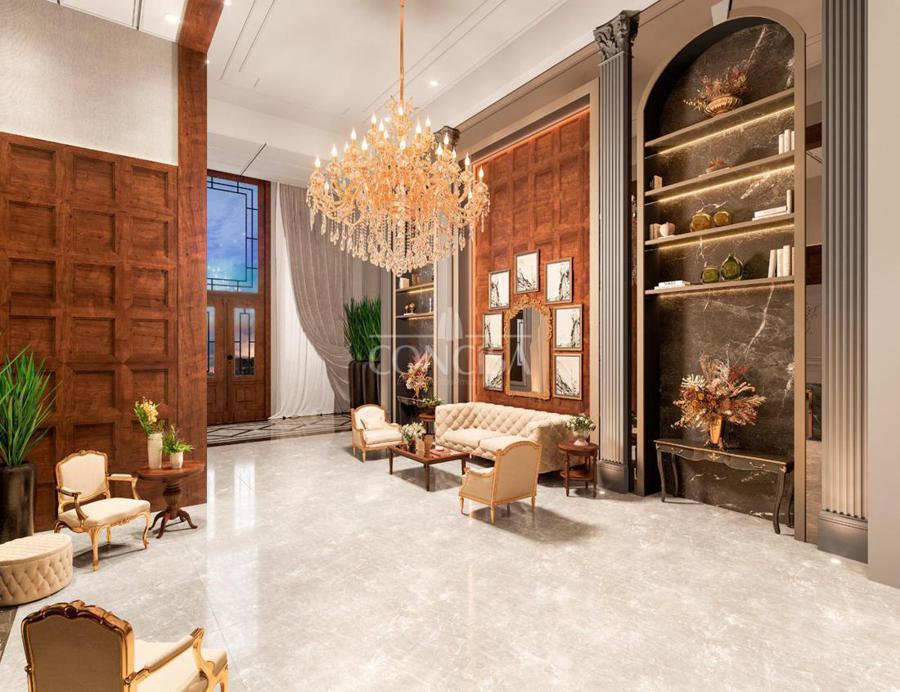 Espera para climatização nas suítes, living e sacada com sistema do tipo split, com laje técnica projetada de forma a receber equipamentos de porte, em quantidade adequadas, sem referir a estética da fachada;