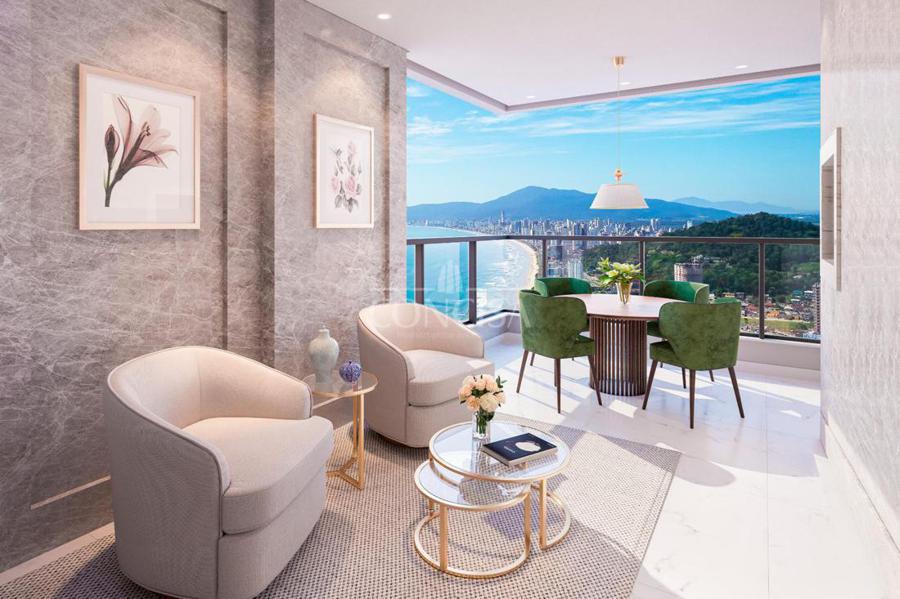 Piso em porcelanato no living, sacada, cozinha, área de serviço, banheiros e lavabo;