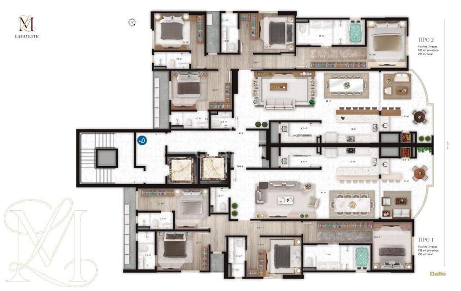 • Área Total Privativa:185.00 m²
